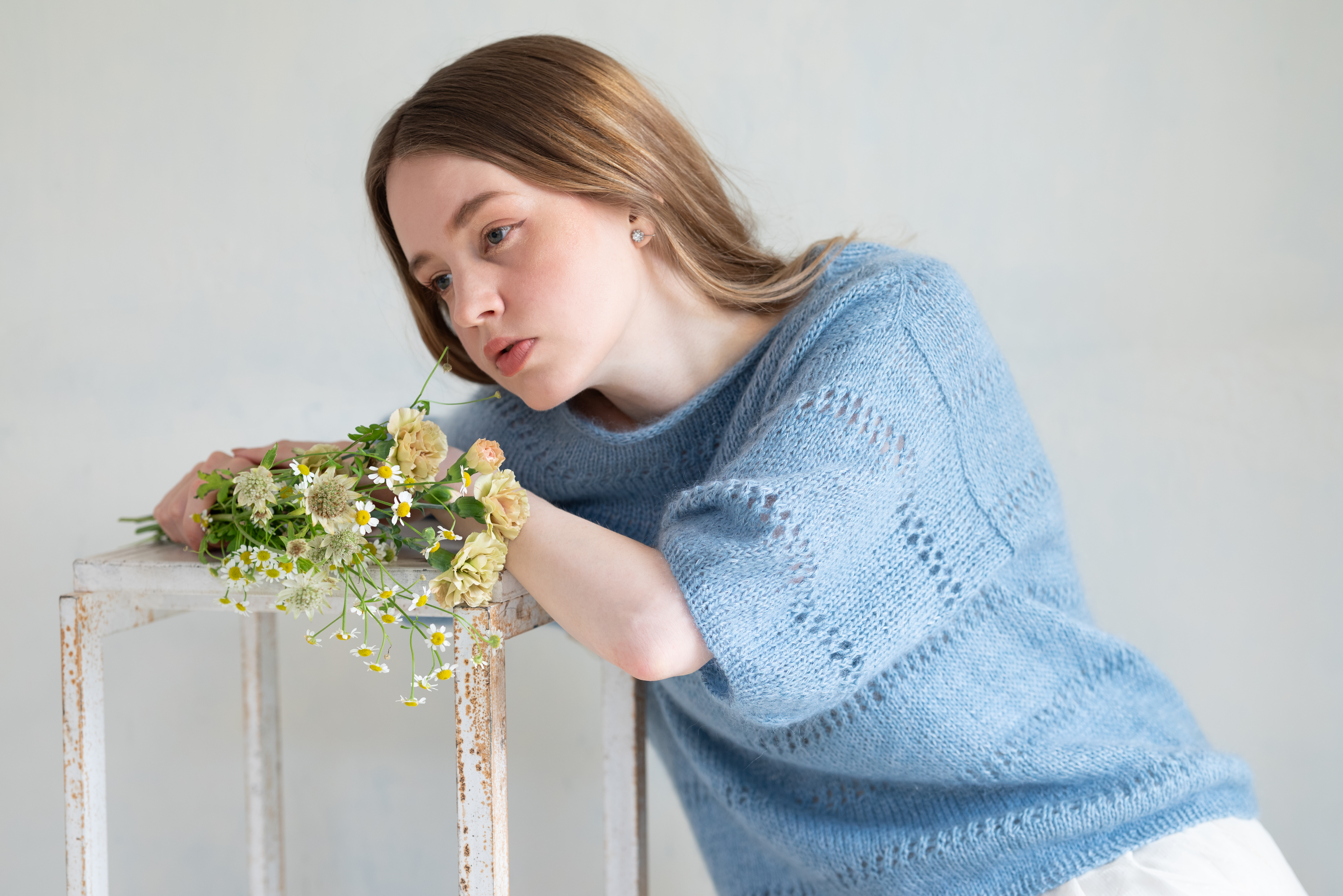Włóczki Sunny Linen i Pearl Mohair potrzebne do wykonania tego swetra znajdziesz w naszym sklepie - PEARL MOHAIR oraz SUNNY LINEN.