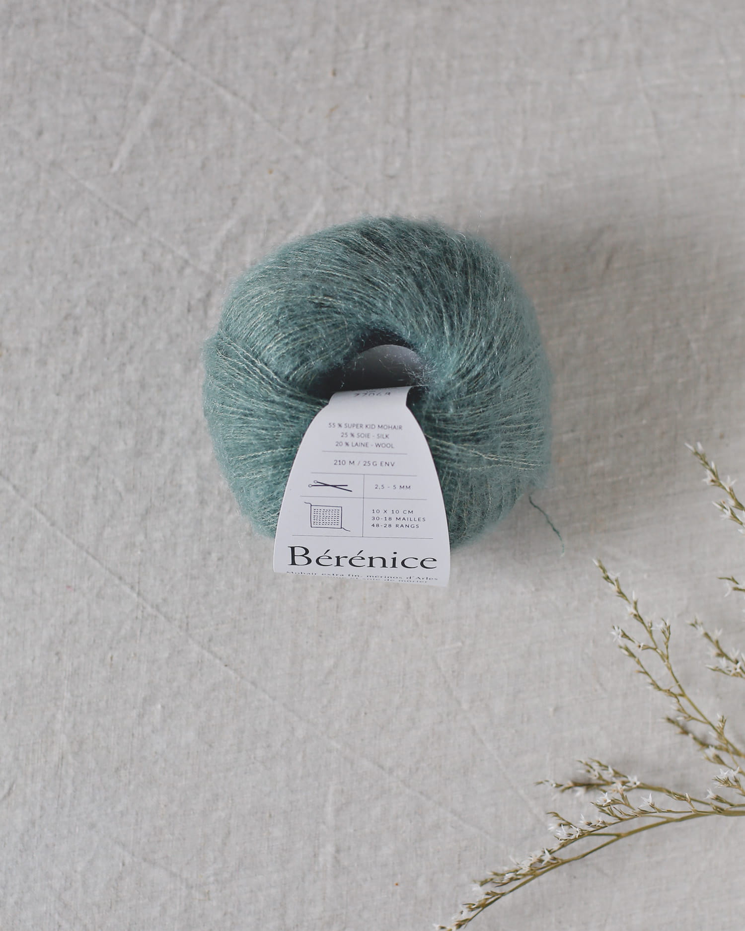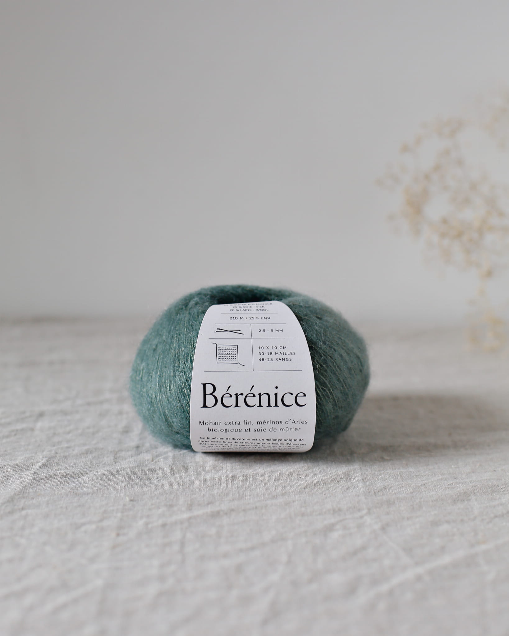 Bérénice to produkowana we Włoszech luksusowa mieszanka włókien kóz angorskich oraz organicznej wełny Merinos d'Arles, przędzonych wokół mocnej jedwabnej nitki. Przędza farbowana jest przy użyciu ekologicznych barwników zgodnych ze specyfikacjami GOTS. Idealnie komponuje się z innymi włóczkami, dodając im blasku oraz miękkości. Przy samodzielnym użyciu tej włóczki powstanie bardzo puszysta i prześwitująca struktura, która zapewni wyjątkowy wygląd tworzonym produktom.