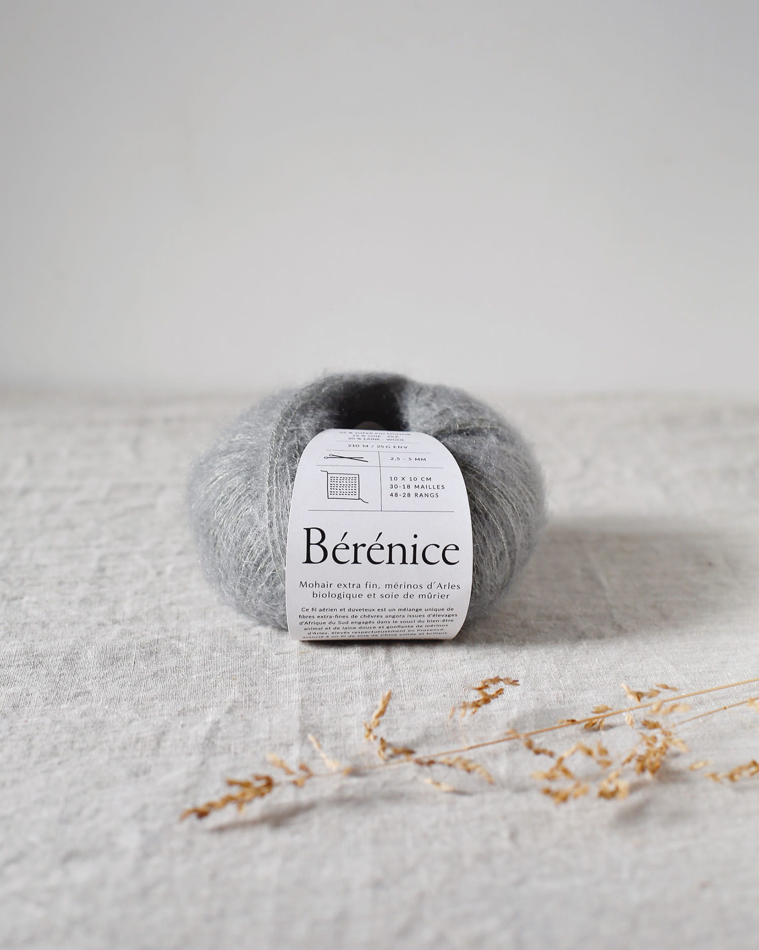 Bérénice to produkowana we Włoszech luksusowa mieszanka włókien kóz angorskich oraz organicznej wełny Merinos d'Arles, przędzonych wokół mocnej jedwabnej nitki. Przędza farbowana jest przy użyciu ekologicznych barwników zgodnych ze specyfikacjami GOTS. Idealnie komponuje się z innymi włóczkami, dodając im blasku oraz miękkości. Przy samodzielnym użyciu tej włóczki powstanie bardzo puszysta i prześwitująca struktura, która zapewni wyjątkowy wygląd tworzonym produktom.