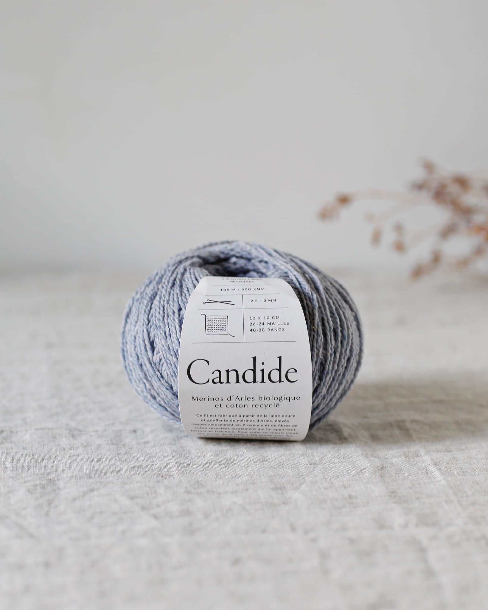 Włóczki są przędzone oraz farbowane we Francji. Małe płatki bawełny tworzą oryginalną strukturę. Jest to dość sucha włóczka, która zyskuje miękkość i puszystość po wypraniu. Candide to idealna włóczka na projekty międzysezonowe, dzięki lekkości wełny i przewiewności bawełny.