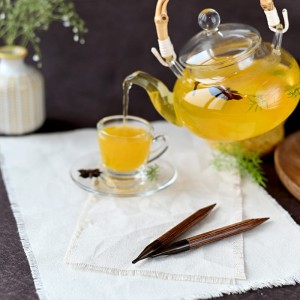 Druty posiadają precyzyjnie wyprofilowane końcówki, co ułatwia nabieranie oczek, a ich wymienny system pozwala na łatwe łączenie z różnymi długościami żyłek. Ergonomiczny kształt i lekkość sprawiają, że idealnie sprawdzają się w długotrwałych projektach, nie męcząc dłoni. Eleganckie wykończenie i ciepły dotyk drewna czynią druty Ginger idealnym narzędziem zarówno dla początkujących, jak i zaawansowanych dziewiarek.