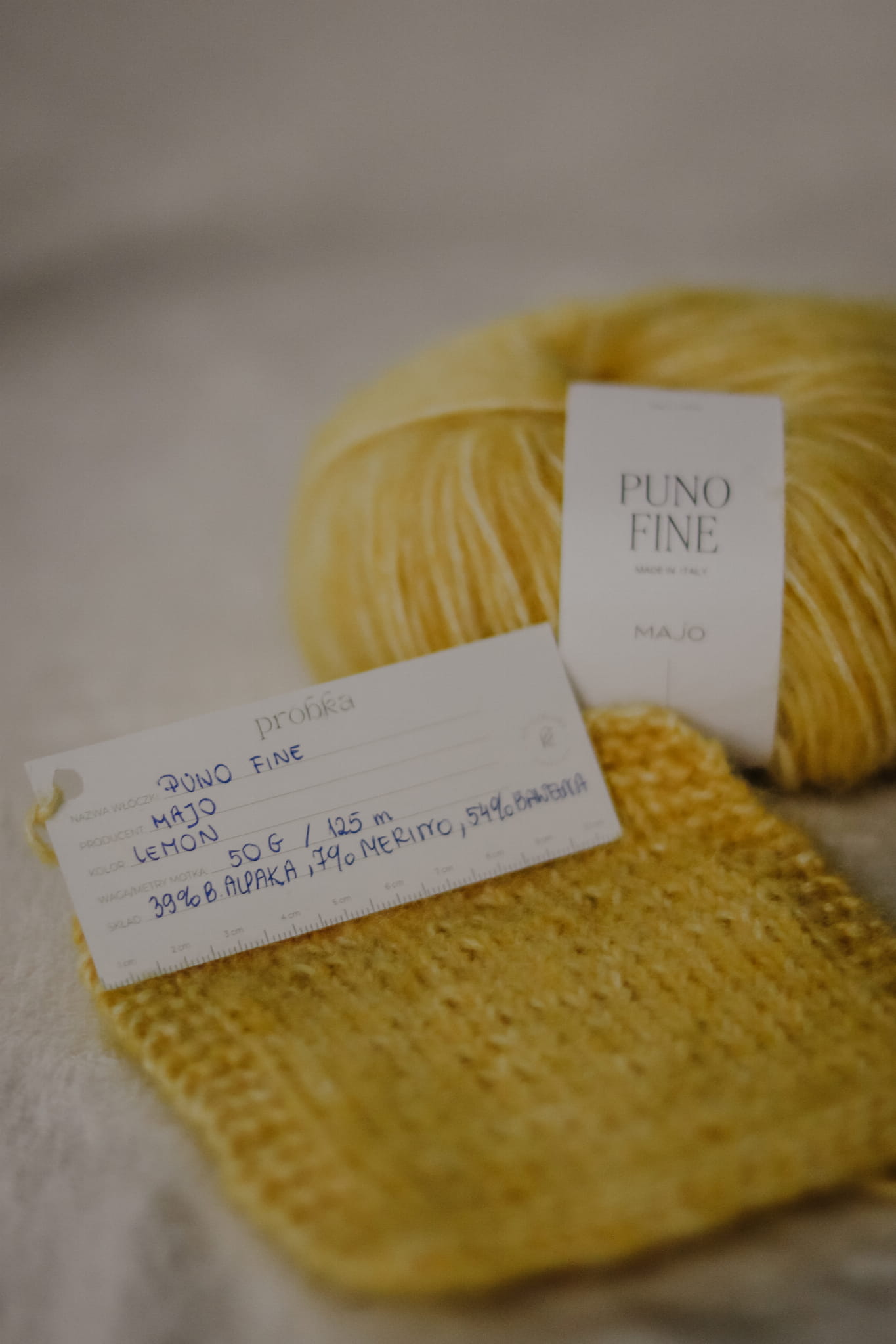 - Pierwsza strona gromadzi kluczowe informacje o włóczce: nazwa, producent, kolor, waga, ilość metrów w motku, skład. Nie musisz już przechowywać banderoli ani przeszukiwać internetu – wszystko masz pod ręką!